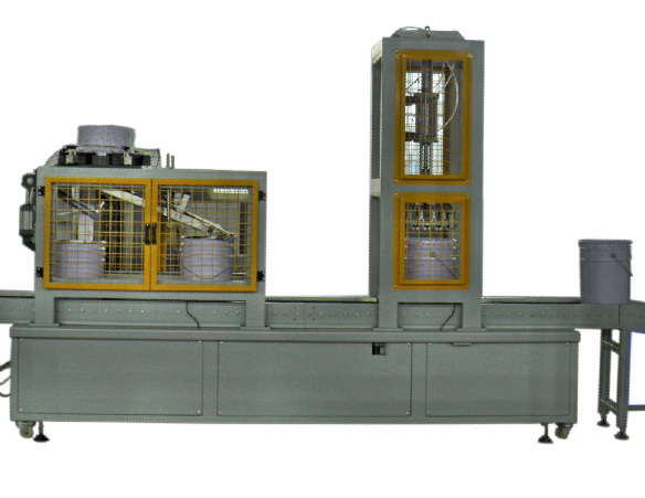 全自動上蓋壓蓋機系一種為重疊在一起的敞口容器(金屬容器/塑料容器)蓋子“量身”定做的自動分離、上蓋、壓蓋的設(shè)備。是將重疊堆放在一起的敞口容器蓋單個分離,通過機械手抓取,放置到需要封口的容器上,再通過光電檢測,專用模具壓抓,將蓋與桶緊密壓制到一起的專用設(shè)備。適用產(chǎn)品:涂料桶,油漆桶等20L桶上蓋壓蓋,可配套使用自動上桶分桶機,自動灌裝機,自動碼垛等組成全自動灌裝自動生產(chǎn)線。