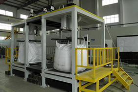 工作流程:操作工打開包裝袋的袋口將風管插入袋口內(nèi),等到空氣將包裝袋填滿成型即可,操作工將1000Kg包裝袋放到條形柵格稱臺上,同時將包裝袋的吊帶掛好在稱臺的吊帶掛架上;操作工將袋口理好套入夾袋桶并給夾帶信號, 按現(xiàn)場啟動按鈕(自動檢測,滿足條件,自動打開對應閥門,啟動供料泵(當條件不滿足時會有蜂鳴報警提示)灌裝結(jié)束,自動關(guān)閉灌裝泵及各閥門停止充填,等待人工放袋,再次給夾袋開關(guān)信號,夾袋器立即張開。操作工移出袋口,同時把袋口擰成麻花狀并打結(jié),再把外袋口拉平扎牢。叉車工將灌裝好的噸袋移至冷卻庫區(qū).